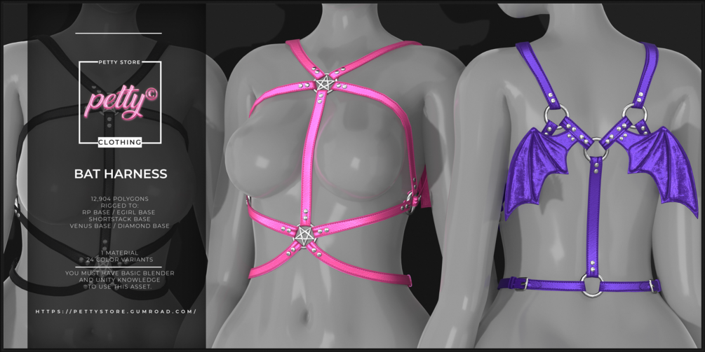 50꒰ა 🎀 ໒꒱BAT HARNESS HALLOWEEN | VRCHAT VTUBE 3D GAME ASSET