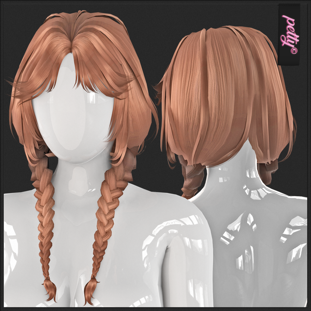 98꒰ა 🎀 ໒꒱LOW POLY PIGTAILS | VRCHAT VTUBE 3D GAME ASSET BY PETTY